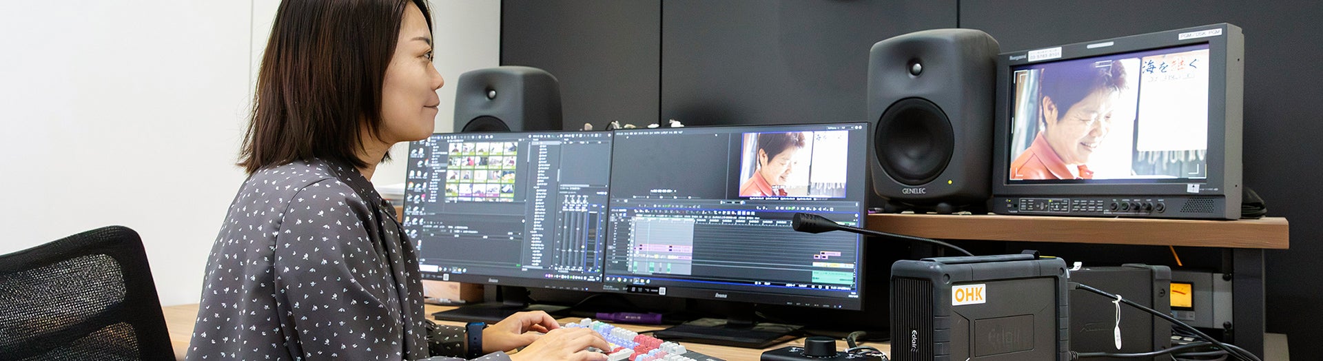 - 2005年、新卒で東京のテレビ番組制作会社に入社し、入社以来10年間情報番組のディレクターを担当。2015年OHKに転職。コンテンツ制作部を経て、現在報道部に所属。環境情報バラエティ番組「Re:SETO」ディレクターや報道記者を務める。