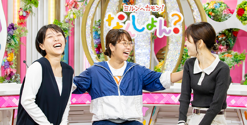 10年以上続くOHKの生放送帯番組『なんしょん?』。ディレクターが作り上げる番組は、編成・広報担当によって視聴率データや市場の視点で分析され、アプリ担当によってデジタル展開といった双方向の企画に生まれ変わります。三者の目線から、部署の壁を越えて密接に連携する仕事の裏側を語り合ってもらいました。